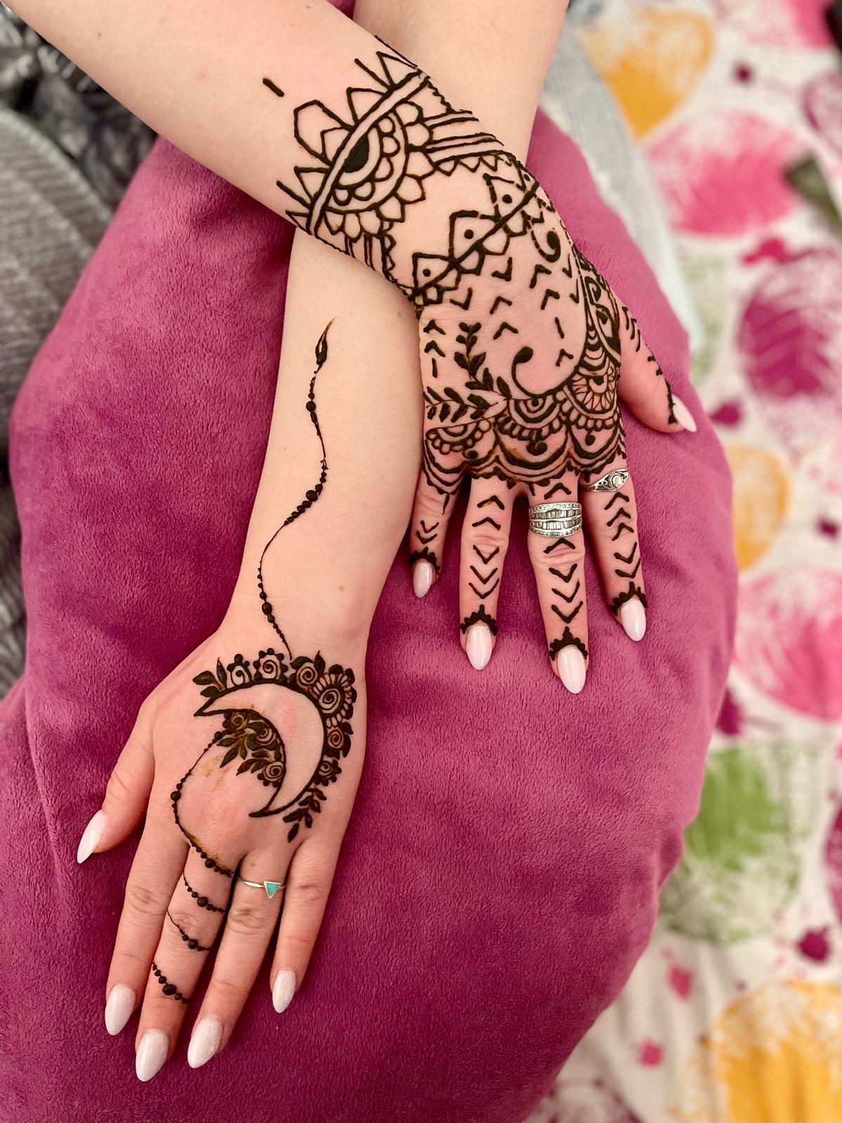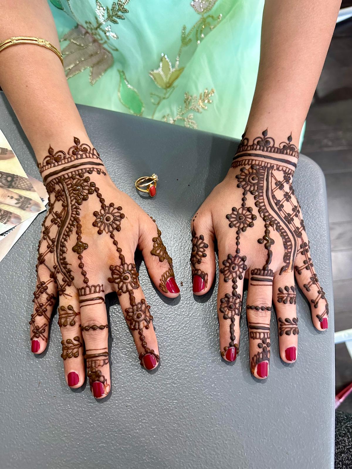 Beautiful custom henna designs and professional makeup services for brides, parties, and special events.